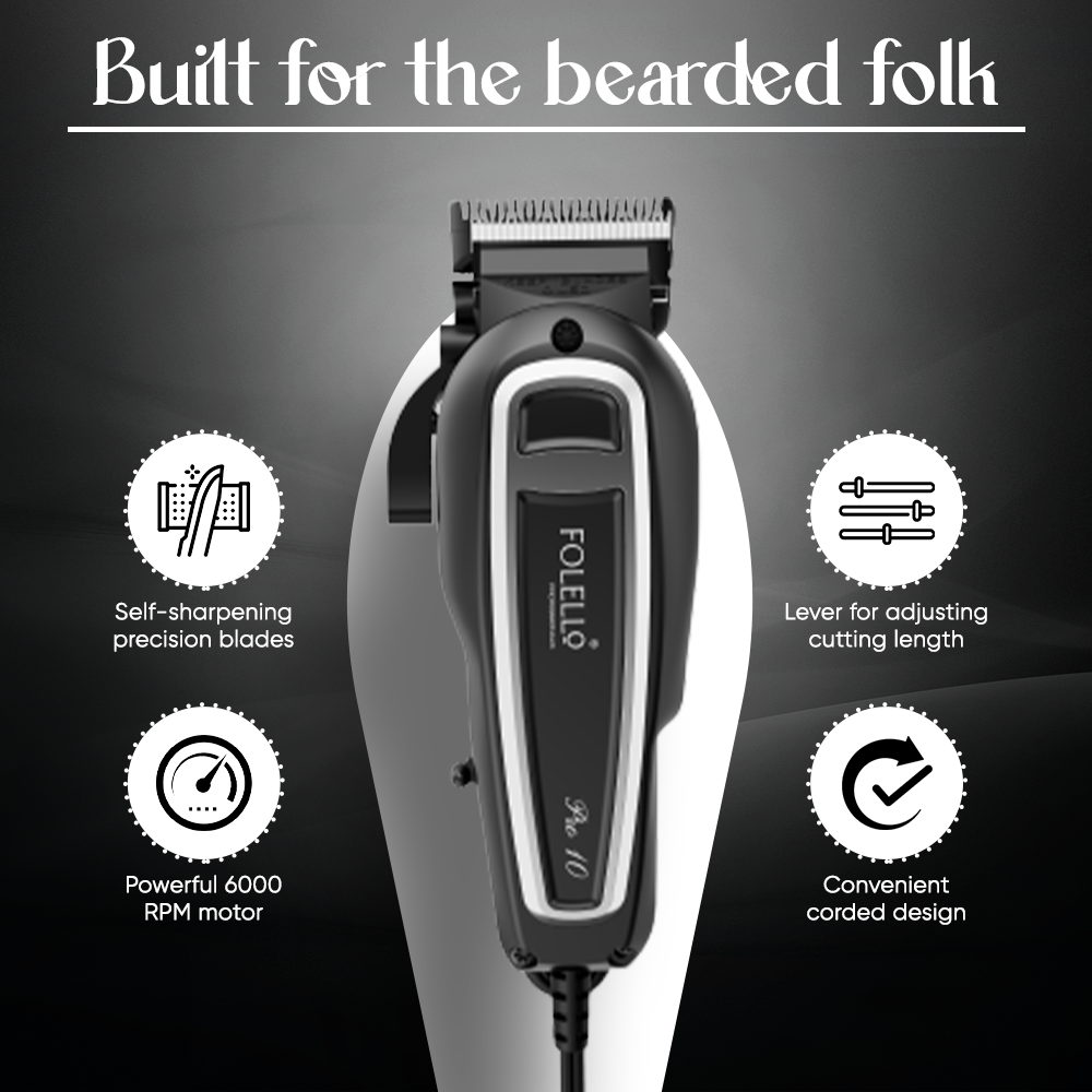 Transform your grooming routine with the FOLELLO Pro 10 Hair Trimmer for Men. Experience the perfect blend of performance, versatility, and reliability, and unlock your best look with every trim. Say hello to effortless grooming and goodbye to salon visits. Order yours today!
