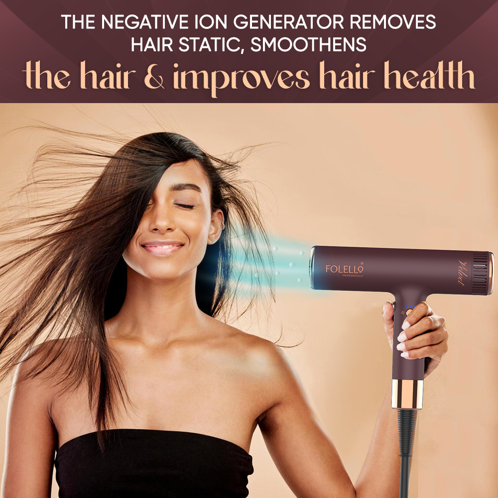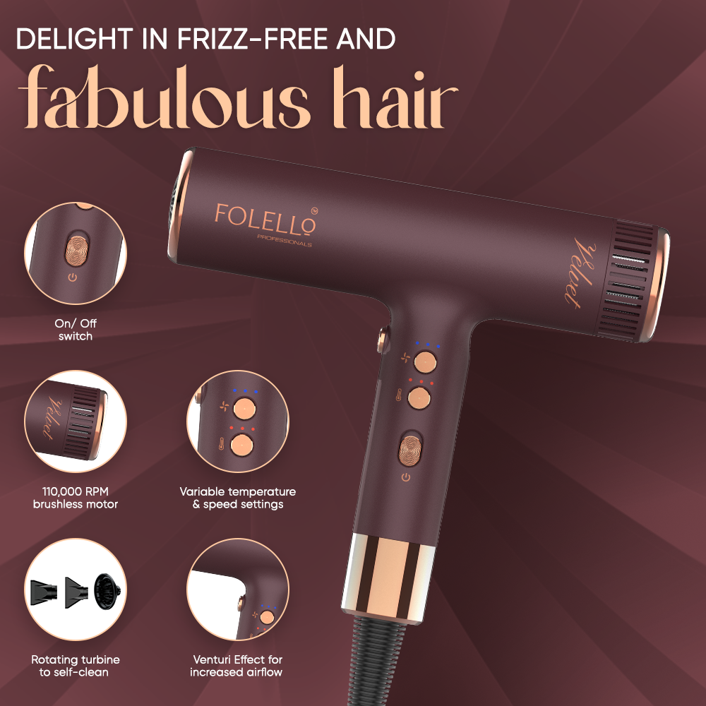 - This hair dryer uses a rotating turbine technology with a unique 110,000 RPM brushless motor, which can reduce frizz by 75% and increase its lifespan by 50%.
