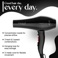 Equipped with a powerful motor boasting up to 2400W of power, the iQ120 Hair Dryer delivers quick and easy blowouts with exceptional efficiency. Say goodbye to long drying times and hello to beautifully styled hair in minutes.