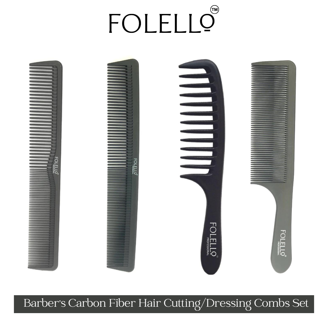 FOLELLO Carbon Fiber Hair Cutting/Dressing Combs Set of 4 + Free Hair Brush/Comb Cleaner