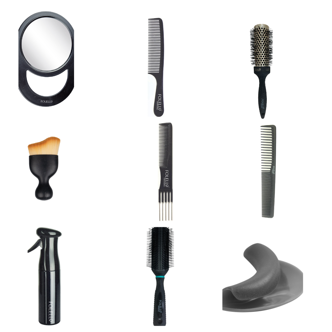 FOLELLO Complete Salon Essentials Kit: Neck Rest, Styling Brushes, Magic Mist Spray, Mirror, Hair Brushes, Carbon Fiber Combs, Blow Dry Brush, Teasing Comb