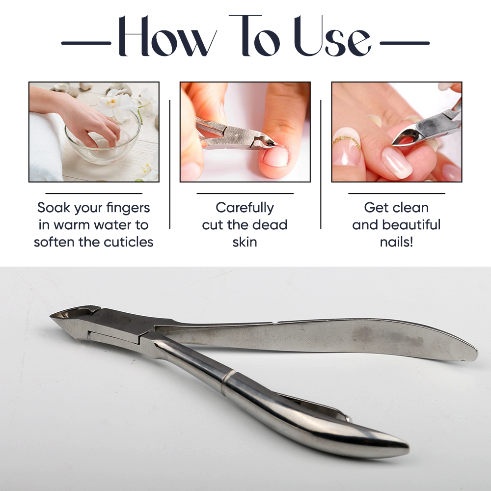 - HOW TO USE - Always soak your fingers in warm water to soften the cuticles and carefully cut the dead skin. Clean the nail nipper after every use.