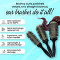 - Trio of Sizes: The set includes three brush sizes - 32mm, 42mm, and 52mm, catering to various hair lengths and textures.