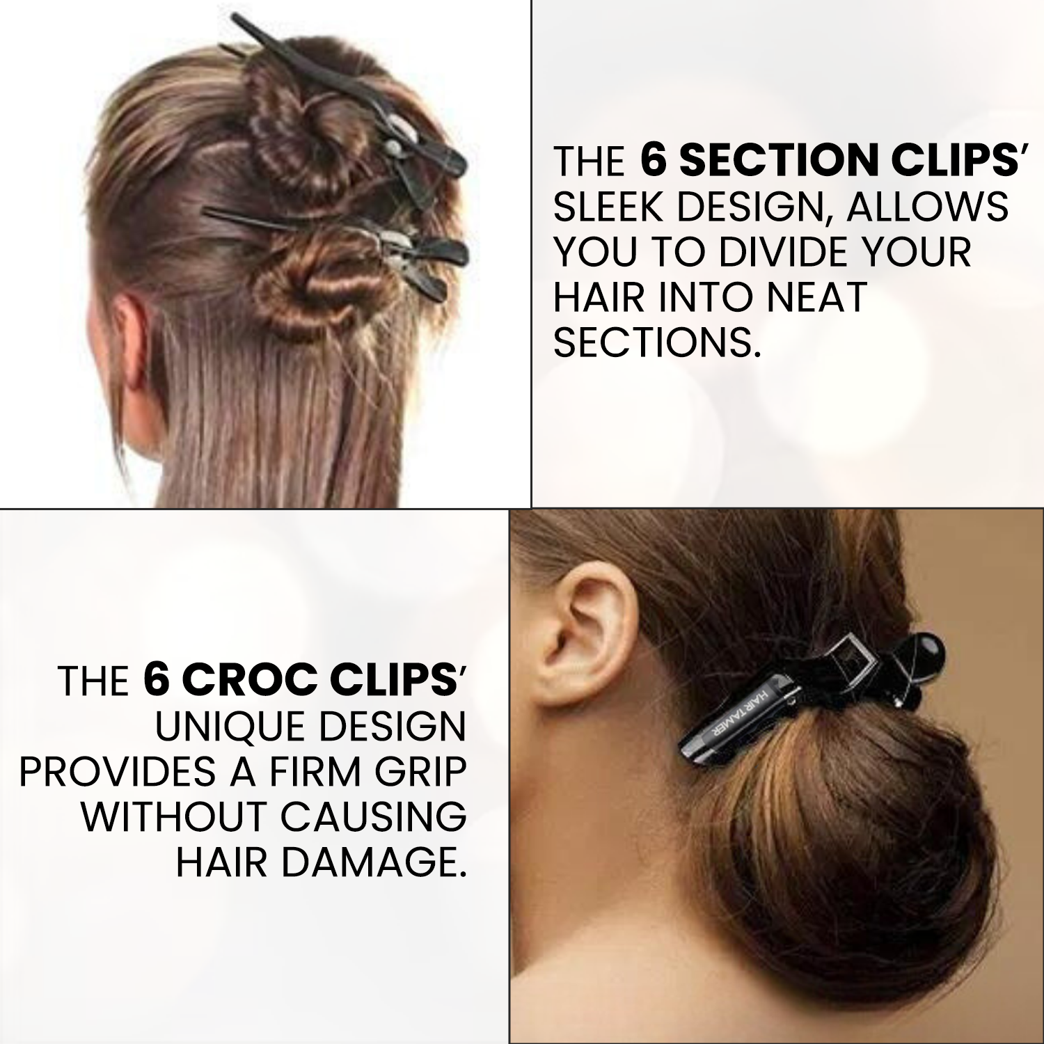 FOLELLO Hair Clips Set: 6 Croc Clips and 6 Section Clips for Hair Styling and Sectioning