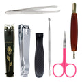 FOLELLO Nail Grooming Kit with 3 Black & Steel Finish Cutters, 1 Pusher, 1 Scissor, 1 Remover & 1 Tweezer | Professional Manicure Set for Home, Salon & Parlour (Pack of 7)