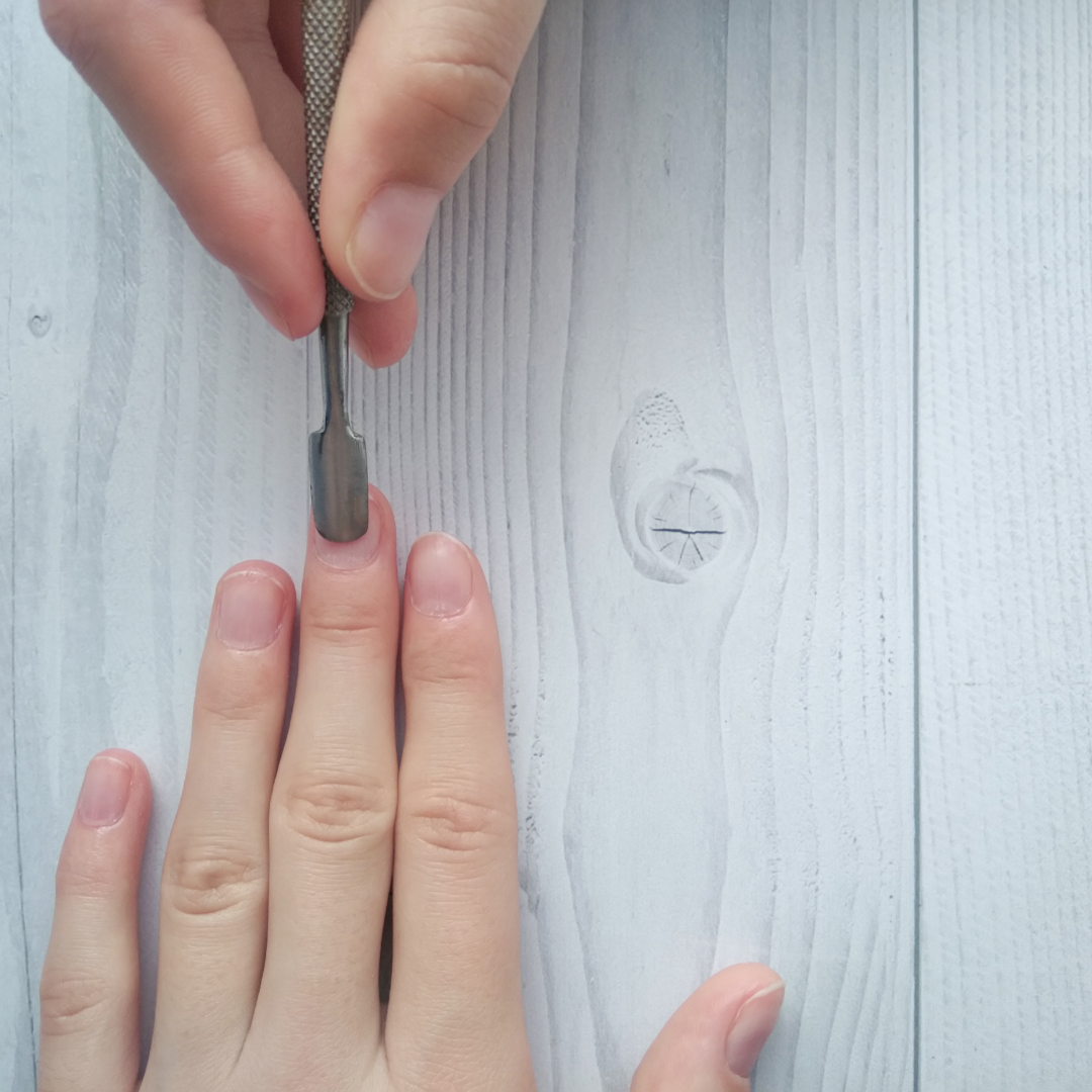 - HOW TO USE - Soften cuticle with oil, or by soaking hands in warm water. Lay the curved end flat on the nail and gently push back and lift. Use the pointed end to scrape off the excess cuticle away.